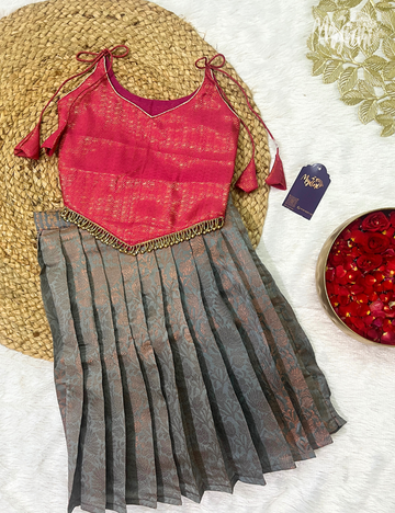 Blush Pink Baby Ethnic Dress - Rose Pink and Ash Grey